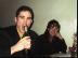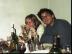 The dry red one, Rob and Diarmid tuck in to their grub.